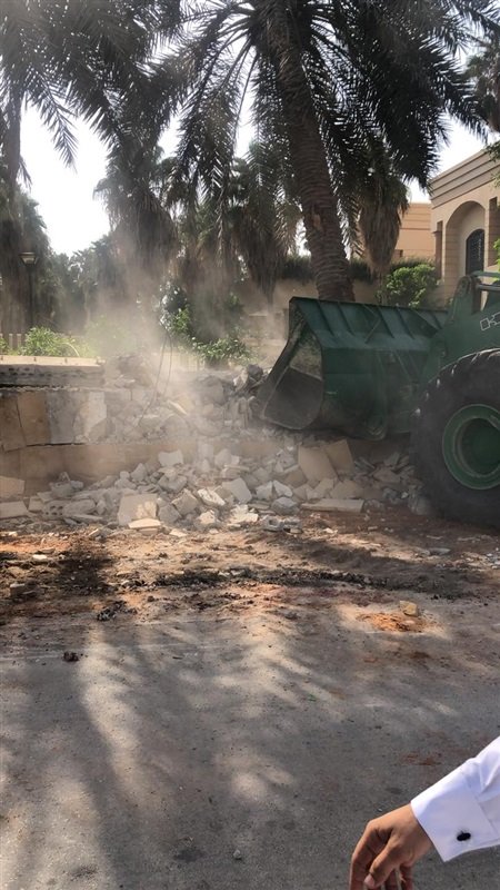 وبنا على اوامر ملكية وخلال الساعات الماضية أزالت أمانة منطقة الرياض ممثلة في بلدية النسيم وبمشاركة قسم التعديات بالأمانة، تعديًا على أرض حكومية بحي الريان ممثلة فى قصور وفلل، وطبقت بحق المخالفين اللوائح الجزائية.