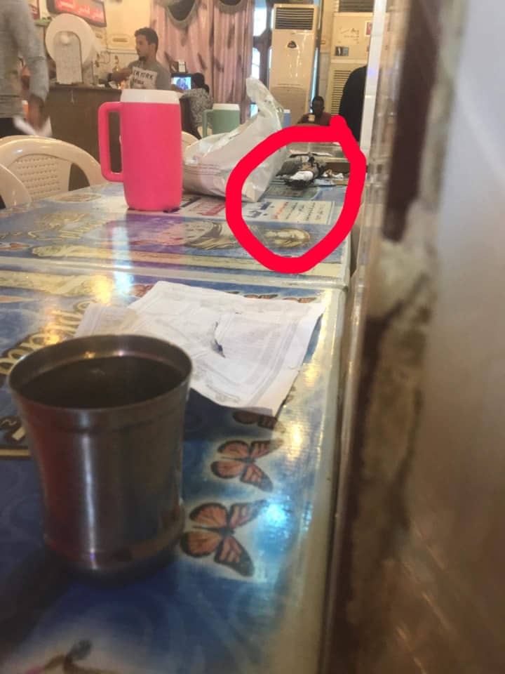 كنت بمطعم ريم جالس آكل، اجى واحد جلس بالطاولة الذي